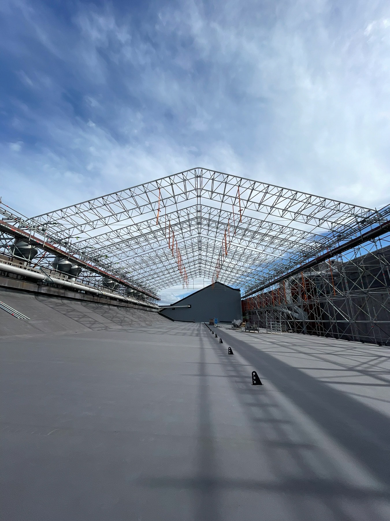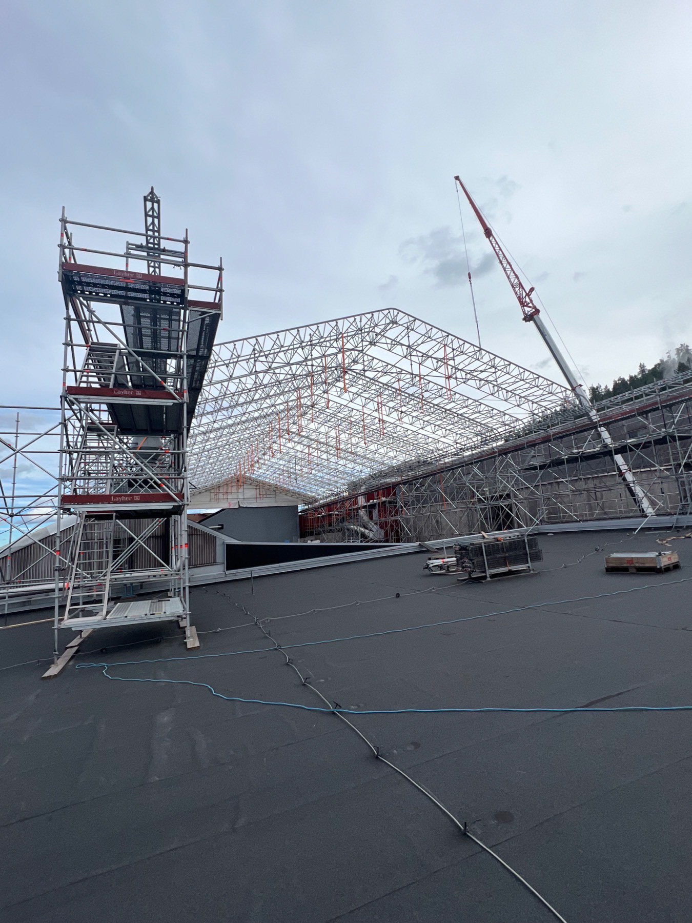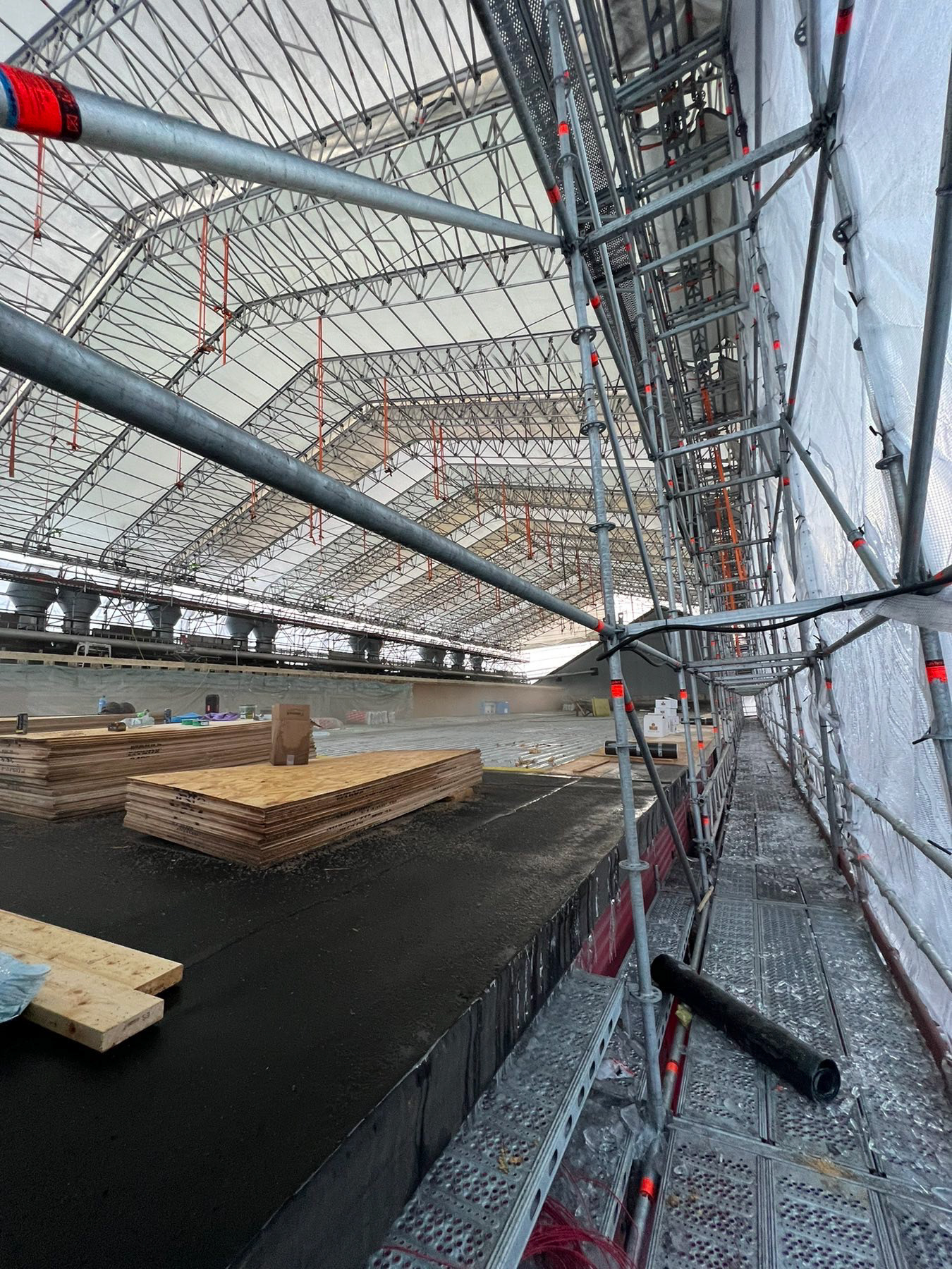 Wir errichten spezielle Gerüstdachsysteme, die Baustellen zuverlässig vor Witterungseinflüssen schützen. So ist eine durchgehende Arbeit an Neubauten, Industriehallen, Fabriken oder Lagerhäusern möglich – unabhängig von Regen, Schnee oder Wind. Unsere Konstruktionen bieten eine zuverlässige, sichere und flexible Überdachung für jedes Projekt.